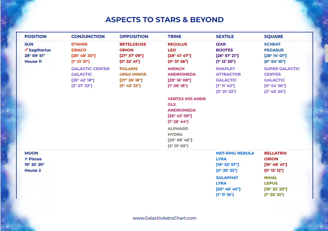 One of the ways this becomes possible is through how the report is structured. Rather than showing only simple connections, it allows you to explore a wider range of relationships between planets, stars, and deep space points. These are organised in a way that makes it much easier to navigate what would otherwise feel like very complex dynamics, so you can follow threads of meaning without getting lost in the technical details.